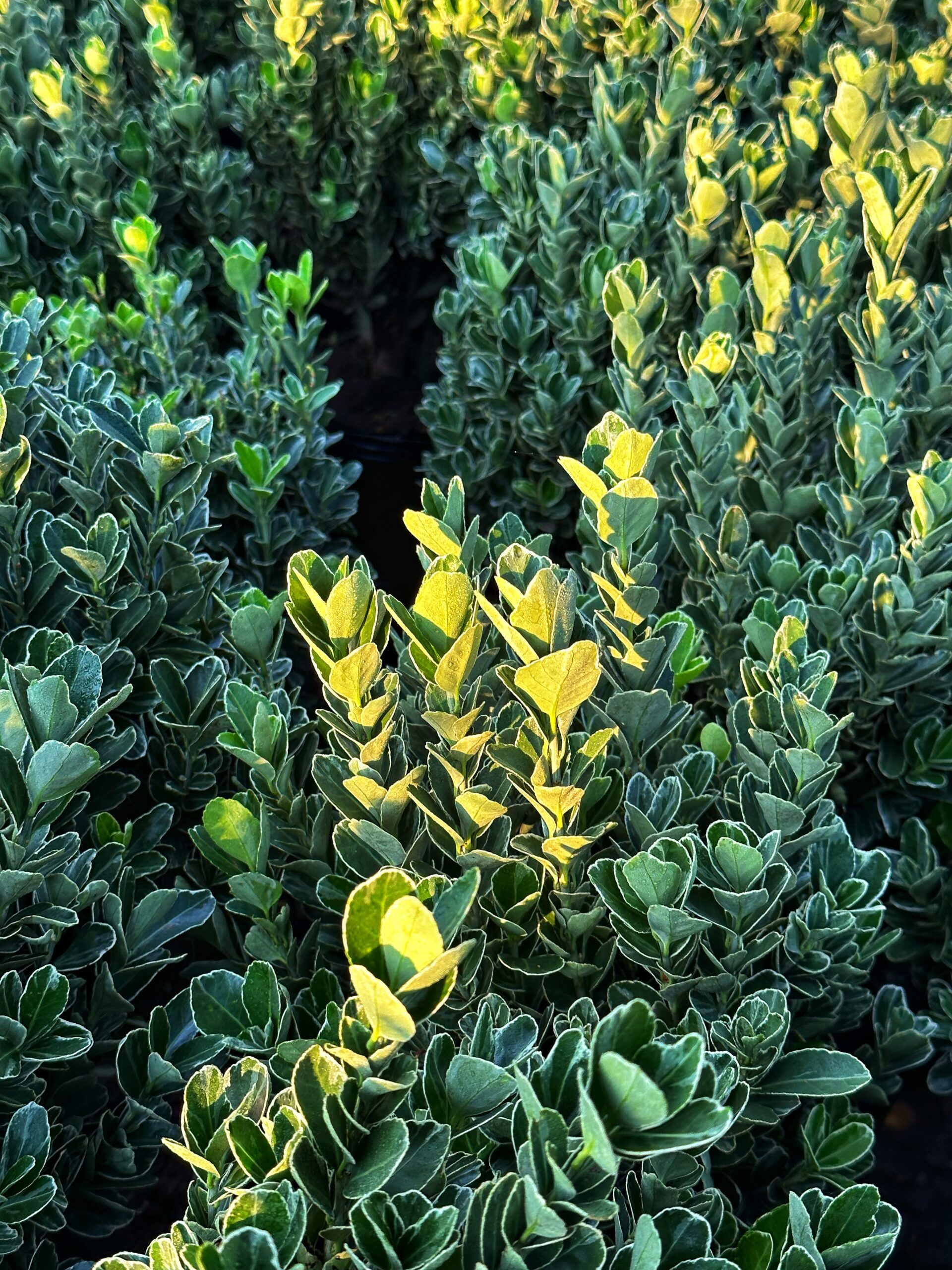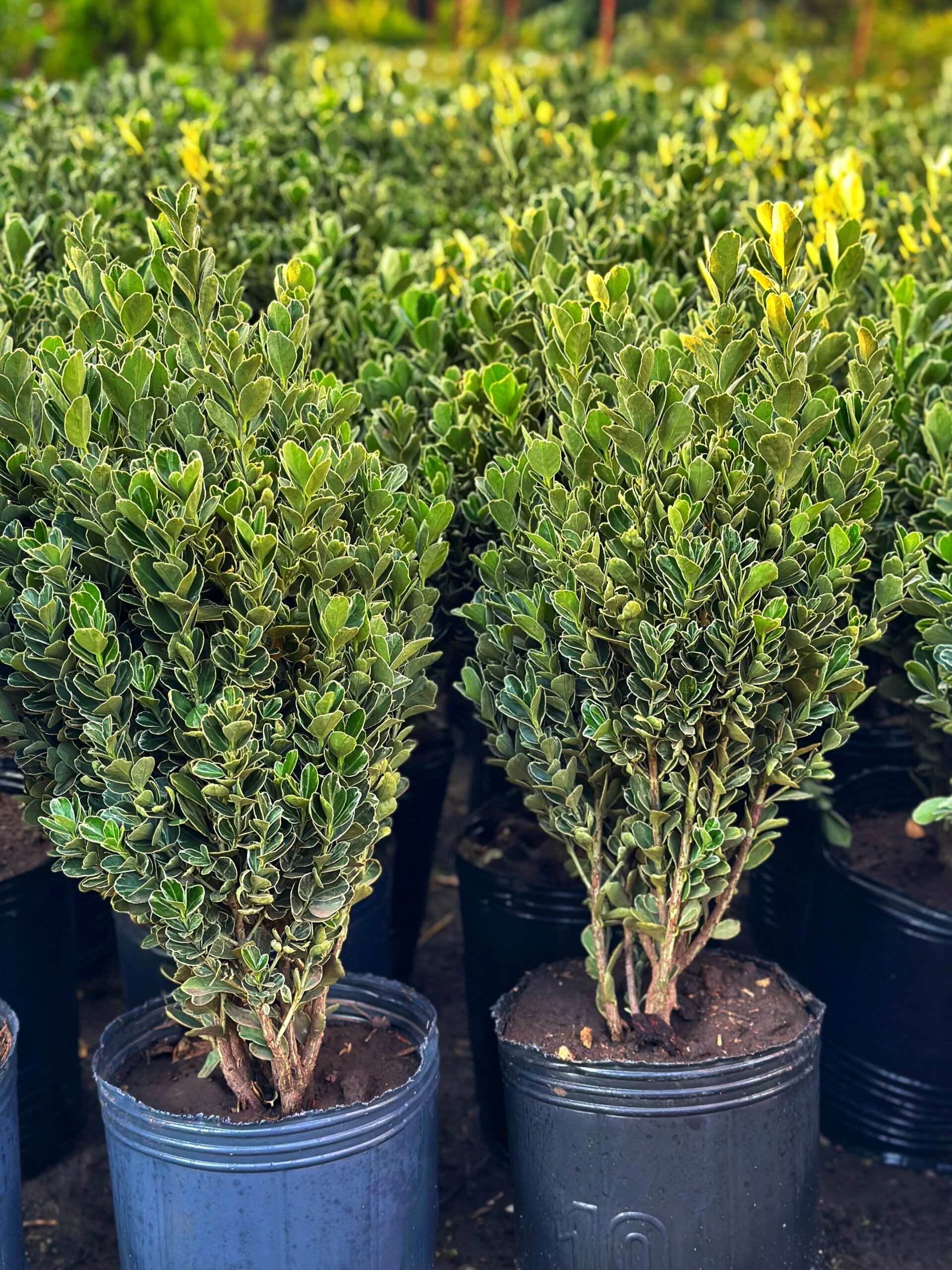 Arbusto perenne con hojas verdes bordadas de blanco plateado, ideal para setos y bordes ornamentales. Su coloración distintiva y su crecimiento compacto aportan un toque elegante y moderno a los jardines.