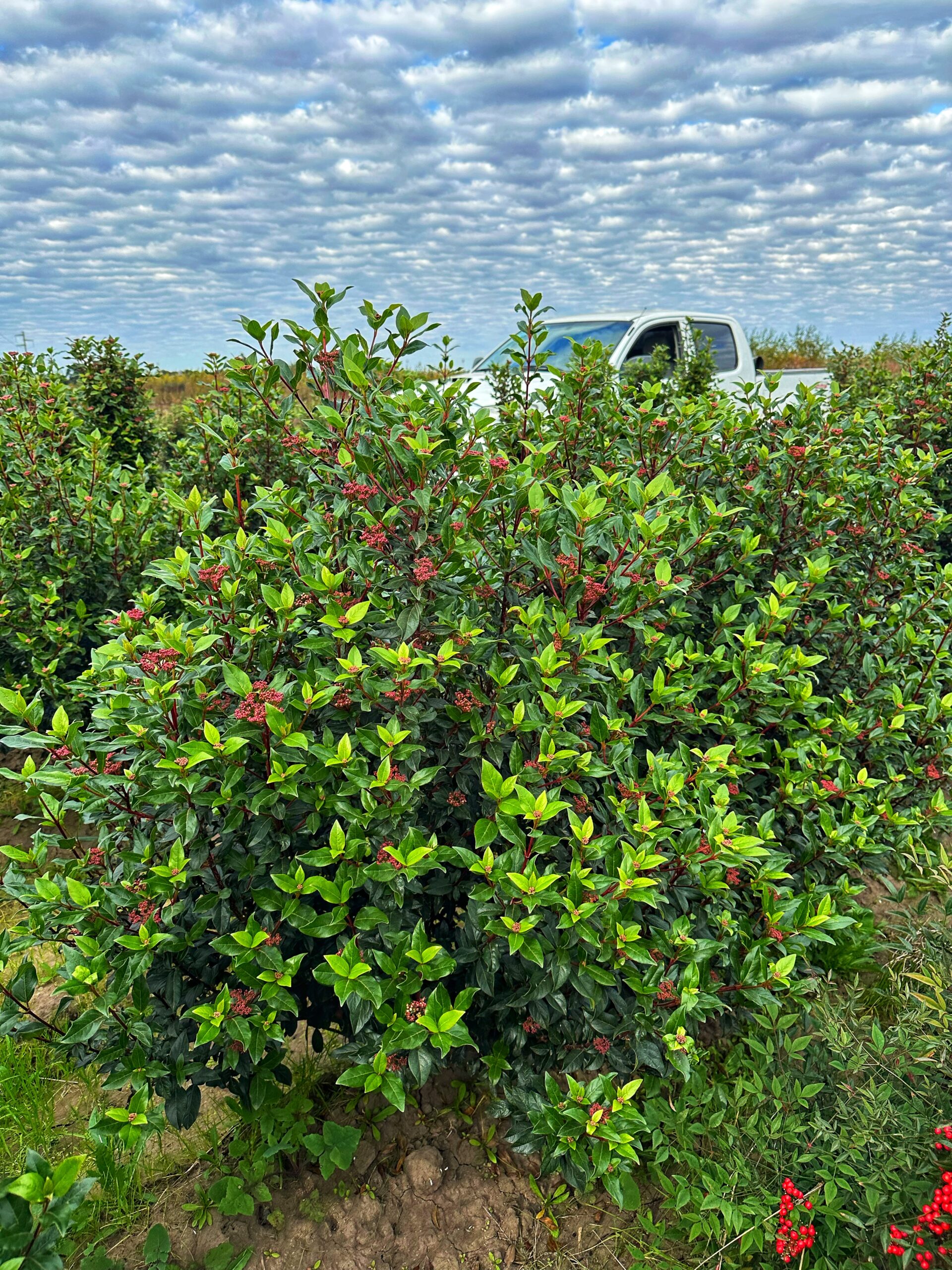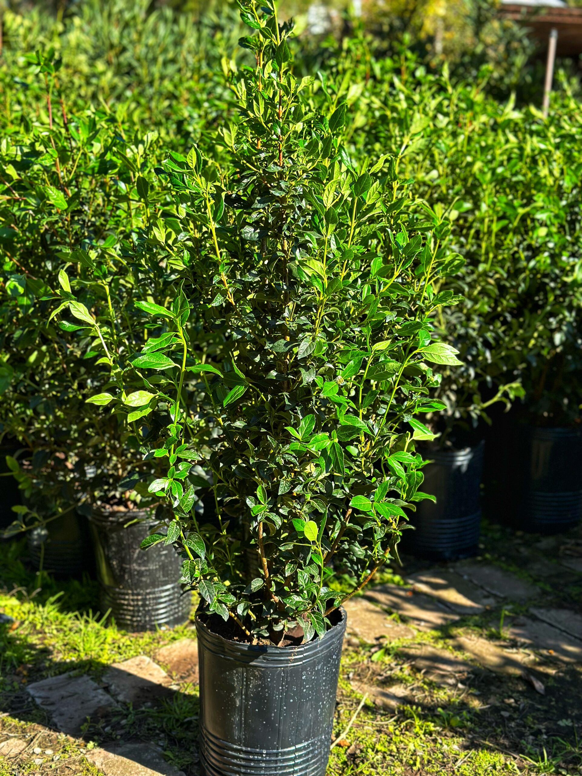 Nombre Científico: Viburnum tinus Arbusto perenne con hojas oscuras y brillantes, y flores blancas o rosadas que se agrupan en racimos, floreciendo durante el invierno y principios de la primavera. Ideal para setos y bordes decorativos en jardines.